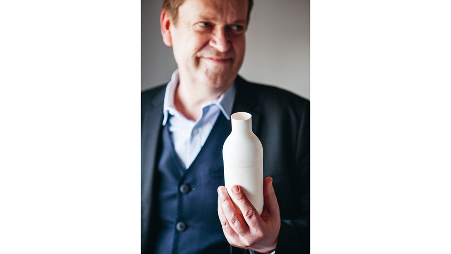 Vi befinner oss hos ecoXpac i ett litet industriområde utanför det danska samhället Slangerup, en dryg halvtimmes bilväg från Köpenhamn. Här utvecklas den så kallade Paper Bottle, som varit en stor snackis inom förpackningsindustrin de senaste åren. Flaskan gjuts i 3D av ny träfiber och när den så småningom når konsumentledet kommer det vara den första av fibermaterial som klarar kolsyrad dryck.