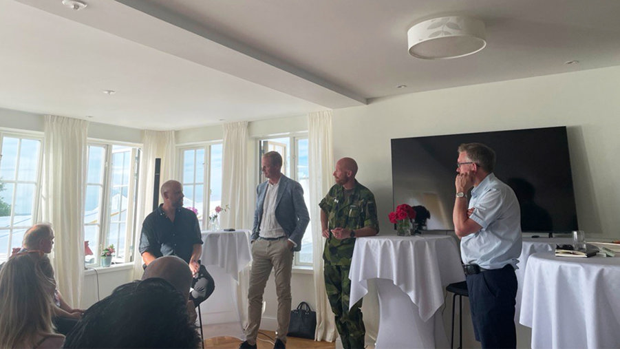 Magnus Frykvall, överste för Gotlands regemente, deltog i samtalet. Precis som de andra panelisterna var han inte nöjd med den långsamma tillståndsgivningen i Sverige. Militären måste snabbt kunna anpassa sig efter säkerhetsläget i en orolig omvärld, som att öva på nya sätt och på nya platser. Allt kräver miljötillstånd. Hur mycket buller får det vara? Hur många skott får avfyras? Hur får man flyga? 2015 lämnades det in en ansökan för Tofta skjutfält söder om Visby. Först nu i april gav regeringen klartecken. Sedan dess har Putin gett skäl till nya ansökningar. Tillstånden hänger helt enkelt inte med och när de väl kommer är de för detaljerade. Enligt Frykvall är områden där artilleripjäser tillåts vara inte ens områden, utan prickar på en karta.
