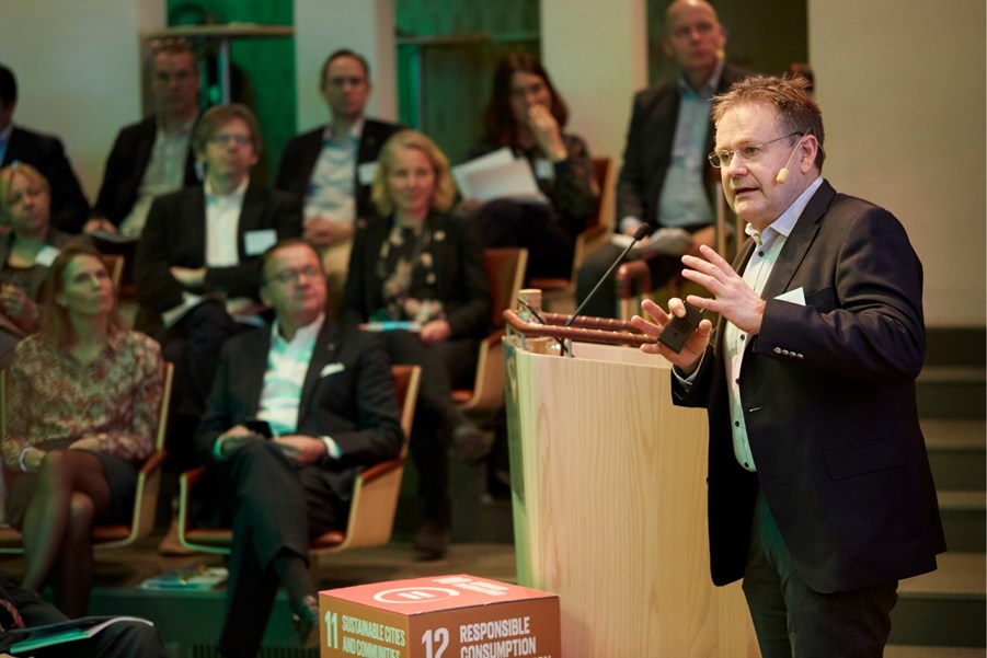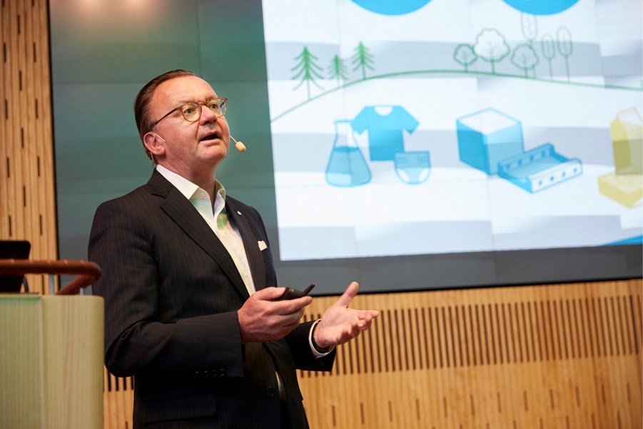 Karl Henrik Sundström, vd och koncernchef på Stora Enso, talade om hur allt vi idag gör från fossila bränslen i framtiden kan göras av skogsråvara