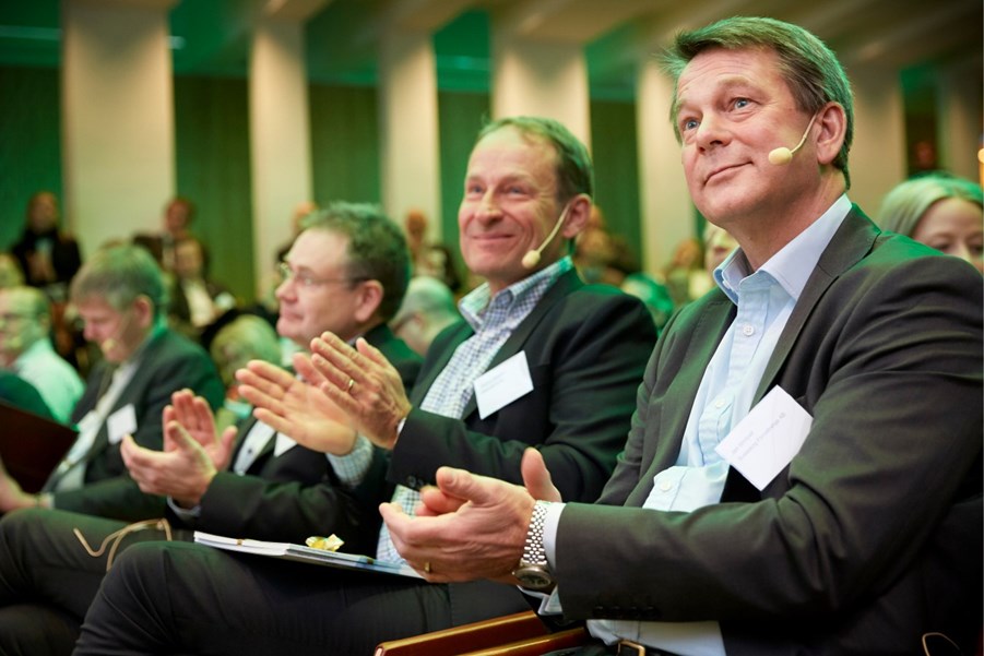 På främre raden syntes Magnus Wikström, teknisk direktör BillerudKorsnäs och Jan Winzell, chef affärsutveckling och innovation på Sveaskog