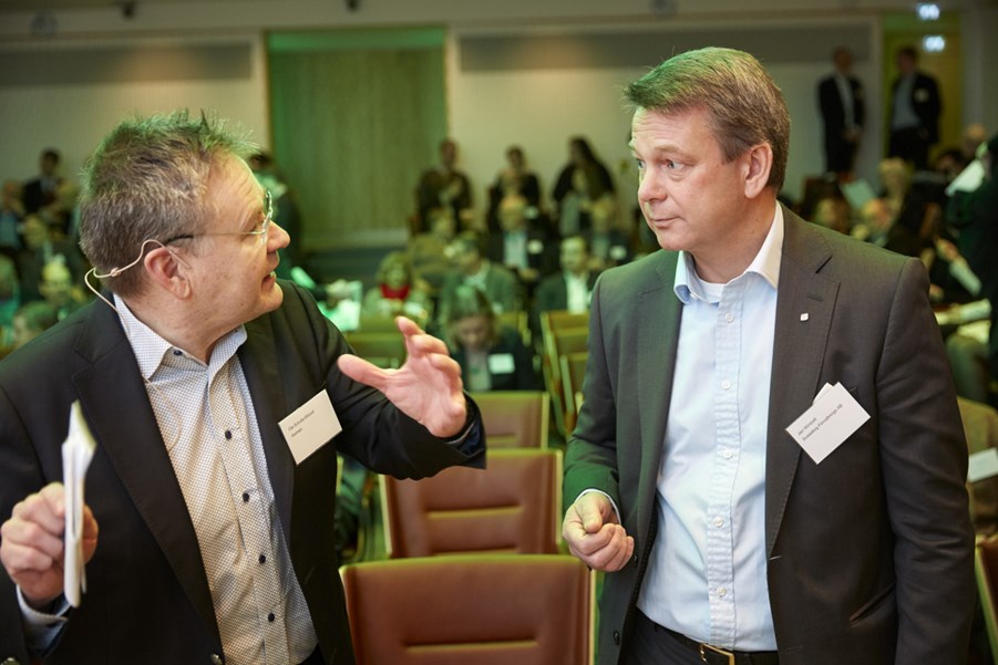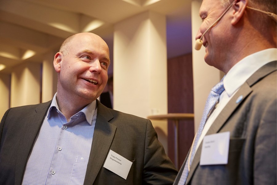 Ola Schultz-Eklund från Holmen pratar viktiga områden för utveckling med Jan Winzell från Sveaskog