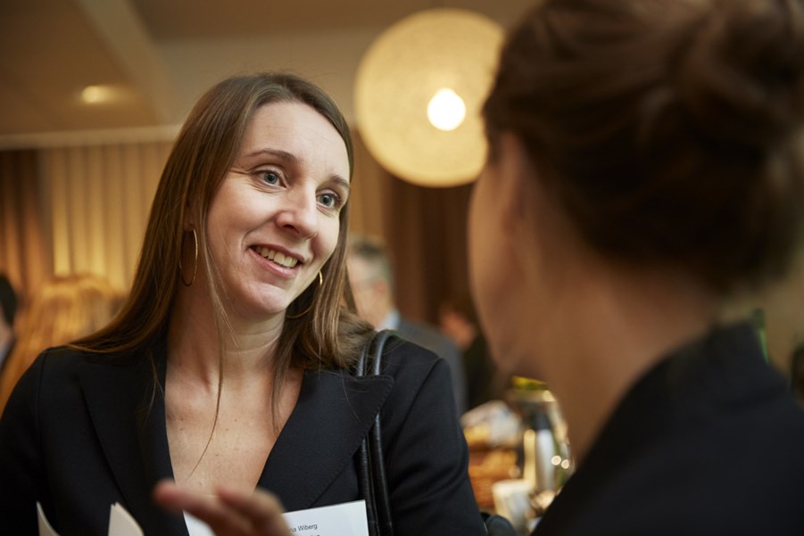 Anna Wiberg, programchef på BioInnovation minglar och pratar om bioekonomi