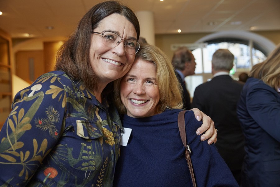 Carina Håkansson, vd på Skogsindustrierna, blir glad när hon ser företagets före detta kommunikationschef Åsa Bihl
